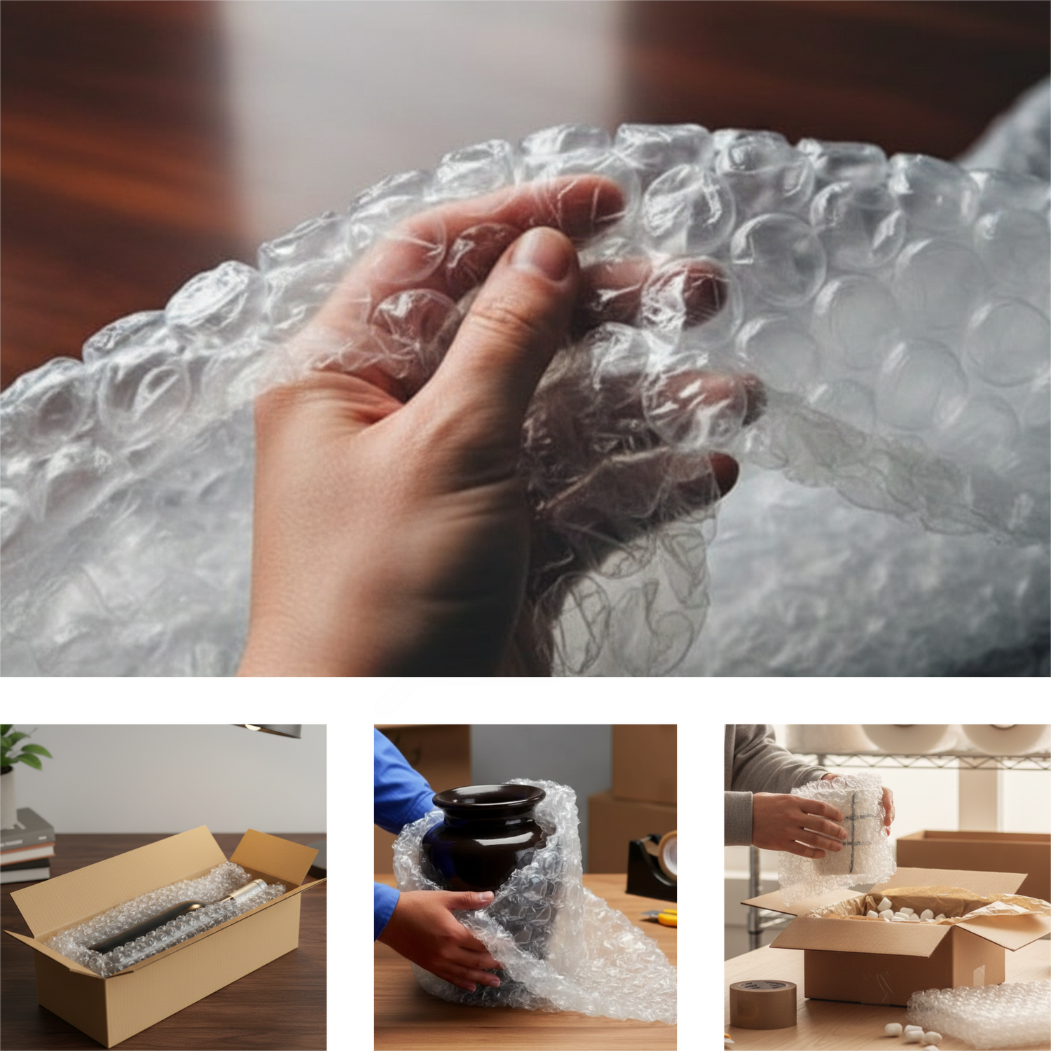 El rollo de poliburbuja es un material de empaque fabricado en polietileno con burbujas de aire encapsuladas que brindan excelente amortiguación y protección contra golpes, vibraciones, polvo y humedad.