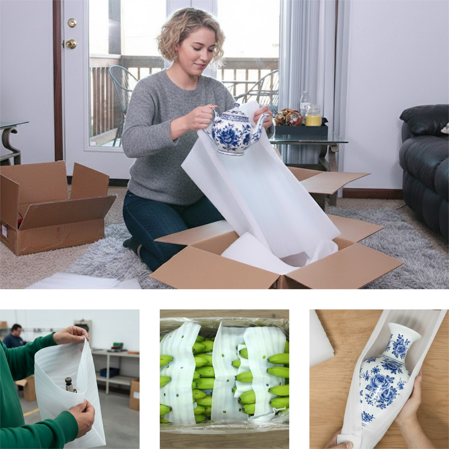 Es ideal para el embalaje de productos frágiles, electrónicos, muebles, cristalería y más, ayudando a prevenir rayaduras, golpes y daños ocasionados por movimientos o vibraciones.